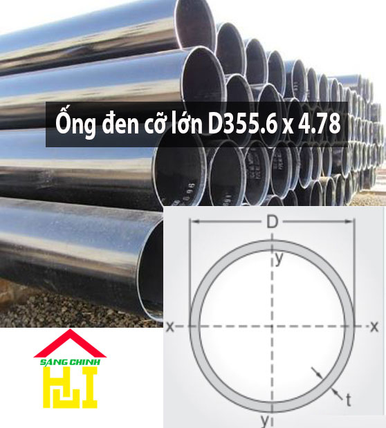 Là loại ống thép đen cỡ lớn có đường kính 355.6mm, độ dày 4.78mm, dùng trong kết cấu thép, cơ khí và công nghiệp.