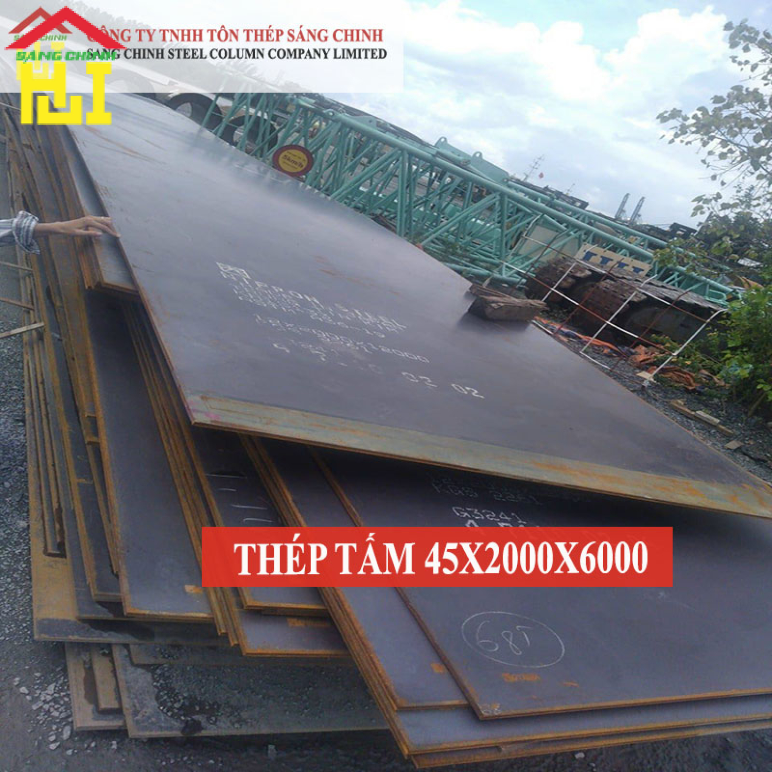 Kích thước thép tấm SS400/Q235B/A36 là 45 x 2000 x 6000mm, phù hợp với các yêu cầu thi công lớn.
