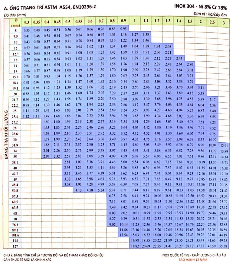 • Bảng tra kích thước ống thép: Cung cấp thông tin chi tiết về kích thước, độ dày, trọng lượng,... của từng loại ống thép theo Schedule.
