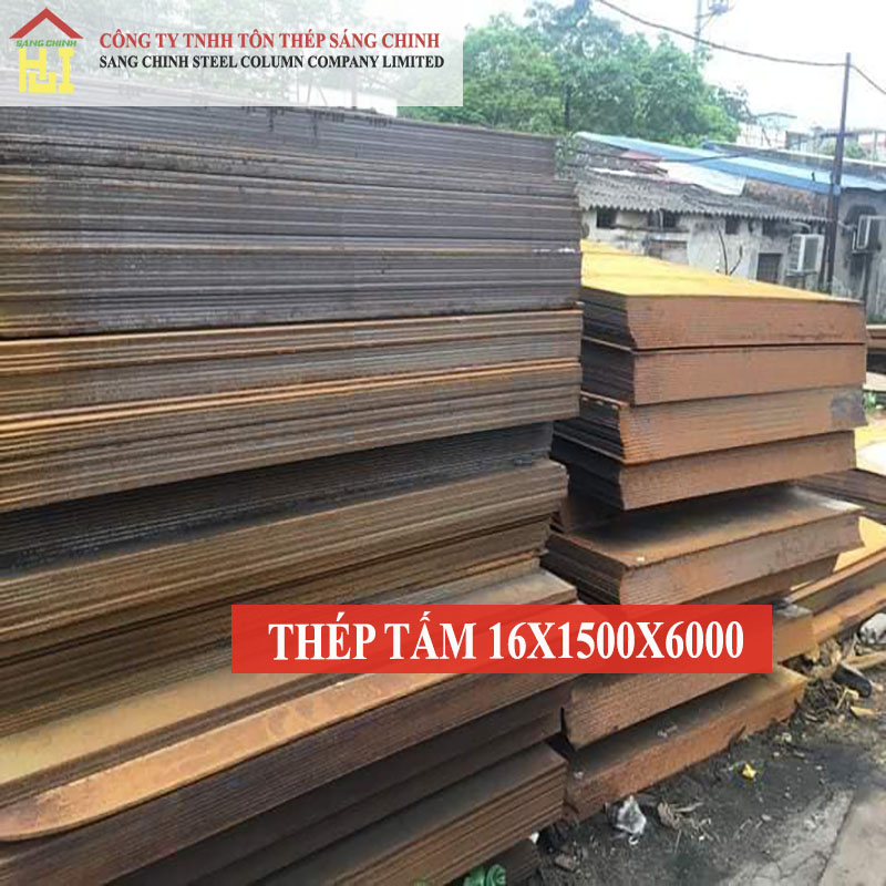 Thép tấm này có nhiều độ dày khác nhau, từ 6mm đến trên 100mm. Quy cách cụ thể được đề cập trong bài là 16mm, một độ dày phổ biến cho kết cấu chịu lực.